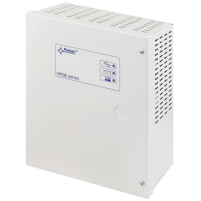 Sursa tampon Pulsar în comutație asigură o tensiune stabilă de 13,8 V DC și un curent de ieșire de 3 A, fiind alimentată la 200–240 V AC. Este echipată cu baterie de back-up de 7 Ah (1 × 7 Ah, dimensiuni 190 × 100 × 75 mm), cu curent de încărcare de 0,5 A, garantând continuitatea alimentării în cazul întreruperilor de rețea.