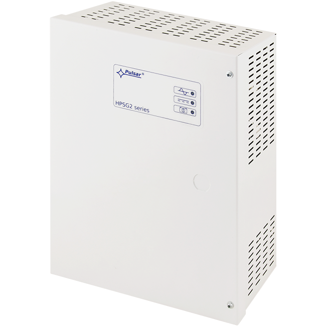 Sursa tampon Pulsar în comutație furnizează o tensiune stabilă de 13,8 V DC și un curent de ieșire de 3 A, fiind alimentată la 200–240 V AC. Este echipată cu baterie de back-up de 17 Ah (1 × 17 Ah, dimensiuni 215 × 172 × 75 mm), cu curent de încărcare selectabil de 0,5 A sau 1 A, asigurând continuitatea alimentării în cazul întreruperilor de rețea. Eficiența ridicată, de până la 86%, contribuie la un consum optim și o funcționare stabilă.